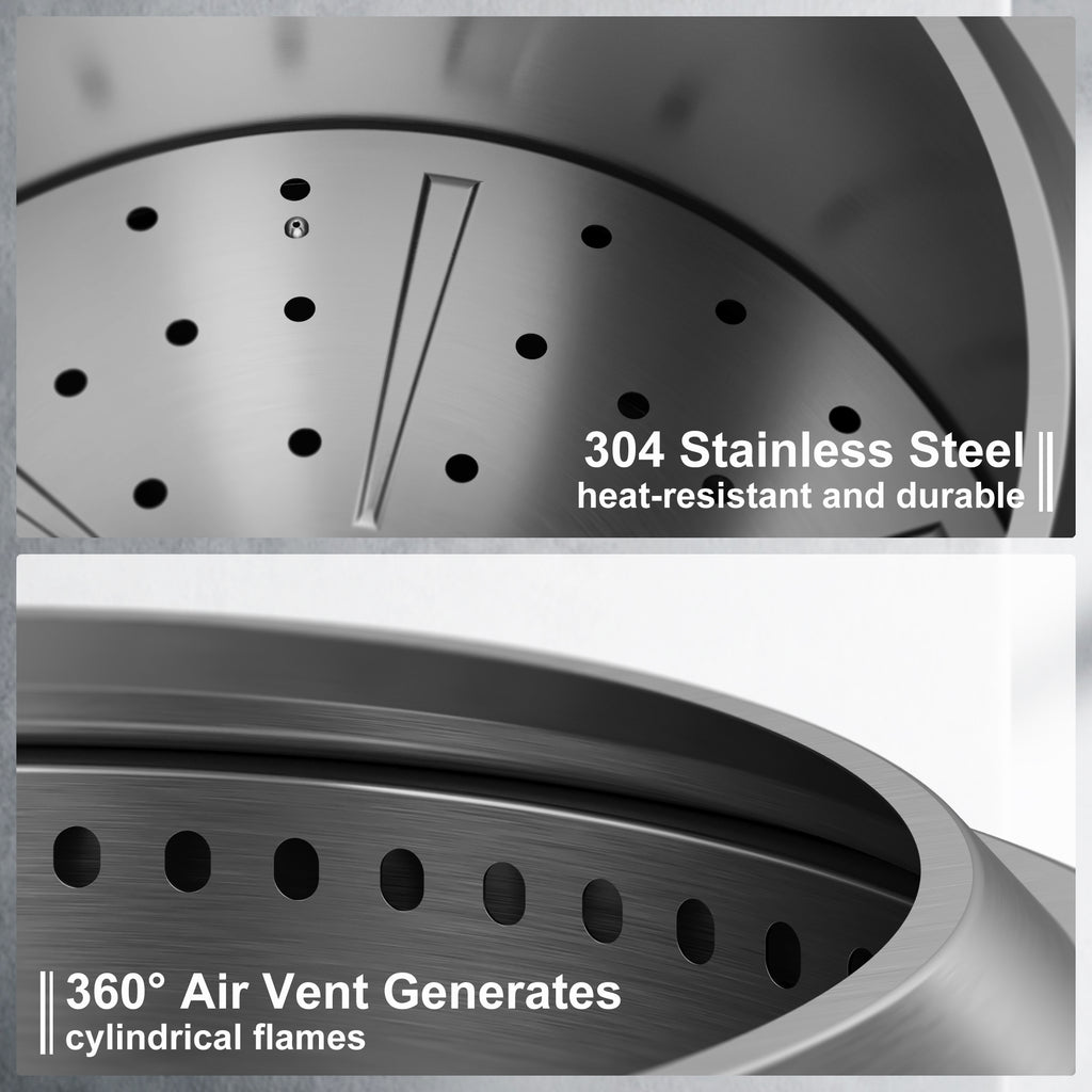 1. High combustion efficiency, smoke-free. Bottom and top double air outlet design, the bottom with four rows of heightened air inlet, makes the combustible material fully combustion, more fire power, while avoiding the production of smoke